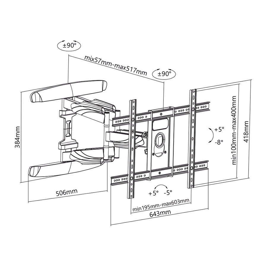 | Rozpiętość mocowania telewizora |