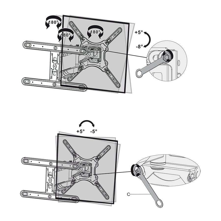 | Rozpiętość mocowania telewizora |